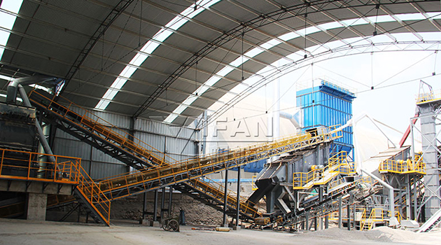 該生產(chǎn)線是鄭州一帆根據(jù)當(dāng)?shù)乜蛻羯a(chǎn)需求,自主研發(fā)設(shè)計(jì)的包含前段破碎到后段制砂的精品機(jī)制砂生產(chǎn)線(砂石同出),在一個(gè)生產(chǎn)線系統(tǒng)中加工生產(chǎn)出骨料和機(jī)制砂兩種成品。其優(yōu)勢(shì)在于,大大提高石灰石物料的利用率,降低整條生產(chǎn)線的廢料量,有效利用生產(chǎn)線廢料來提高產(chǎn)值,整個(gè)砂石同出系統(tǒng),符合國家對(duì)質(zhì)量、節(jié)能及環(huán)保的要求,實(shí)現(xiàn)了真正意義的綠色生產(chǎn)。